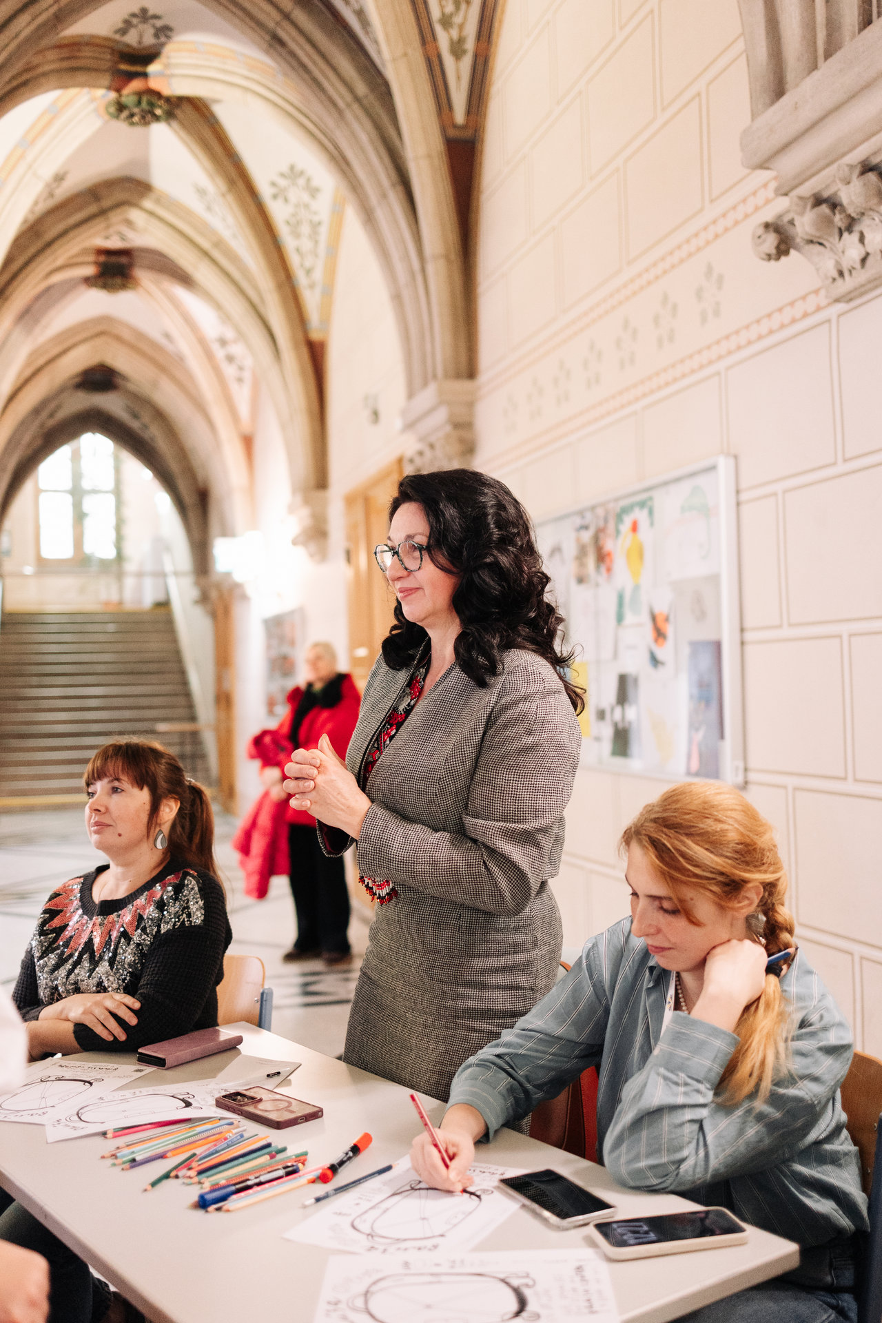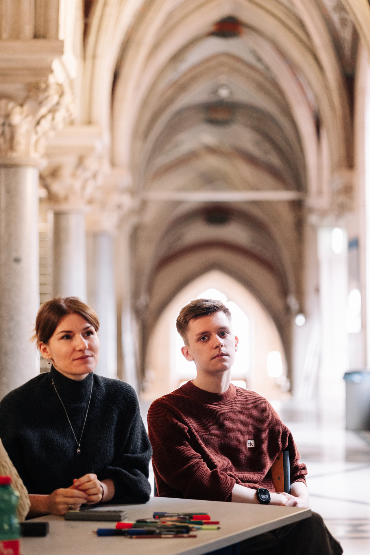 Два дні поспіль команда Freedom Diaries працювала в стінах цієї неймовірної будівлі — і цього разу не тільки відбулася зустріч із вчителями Української недільної школи у Відні, а і презентація проєкту. Креативна директорка проєкту Марія Прошковська та продюсерка Аліна Кочемасова представили курс для вчителів, розповіли про його концепцію, методологію та можливості інтеграції в навчальний процес.